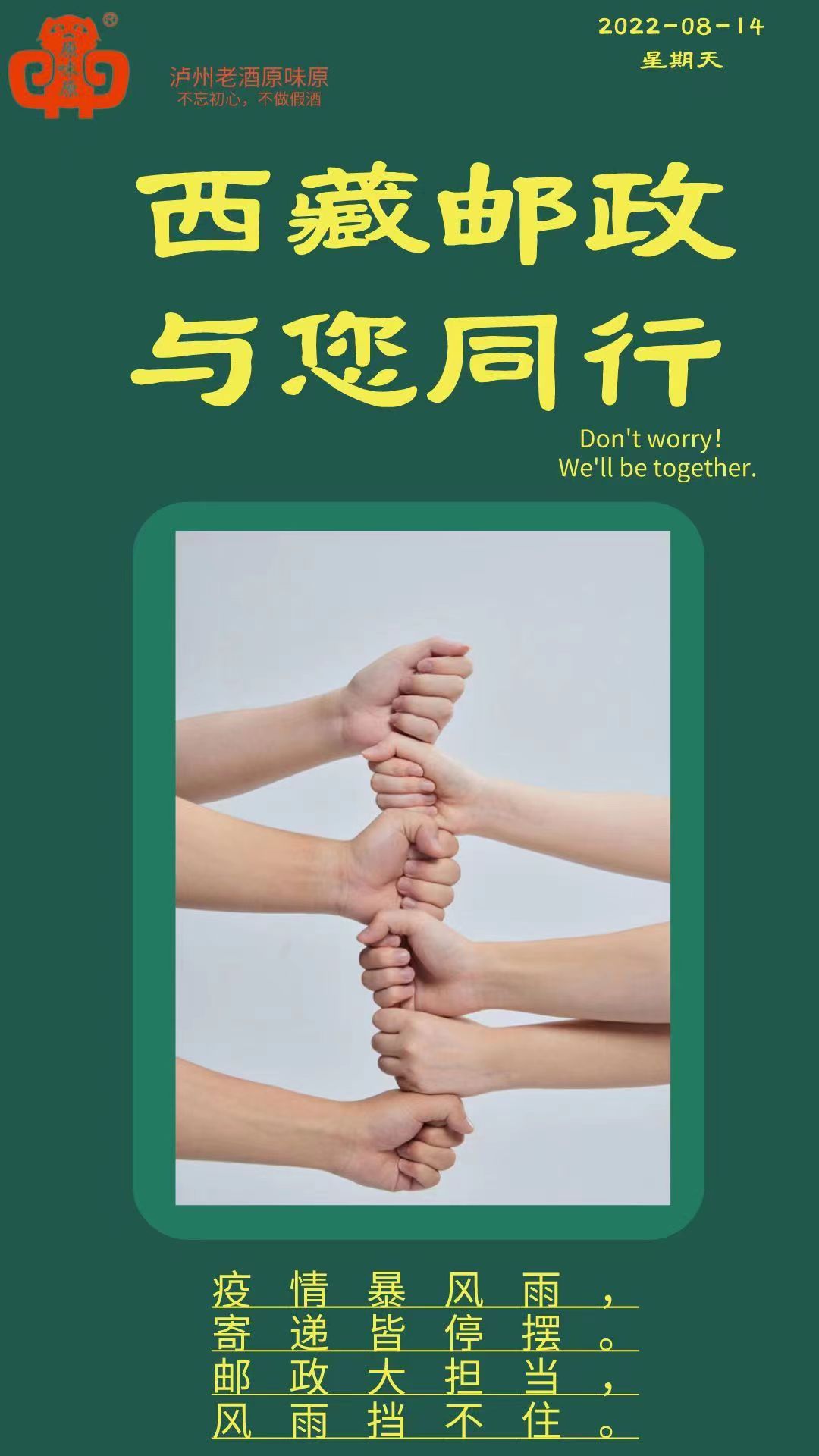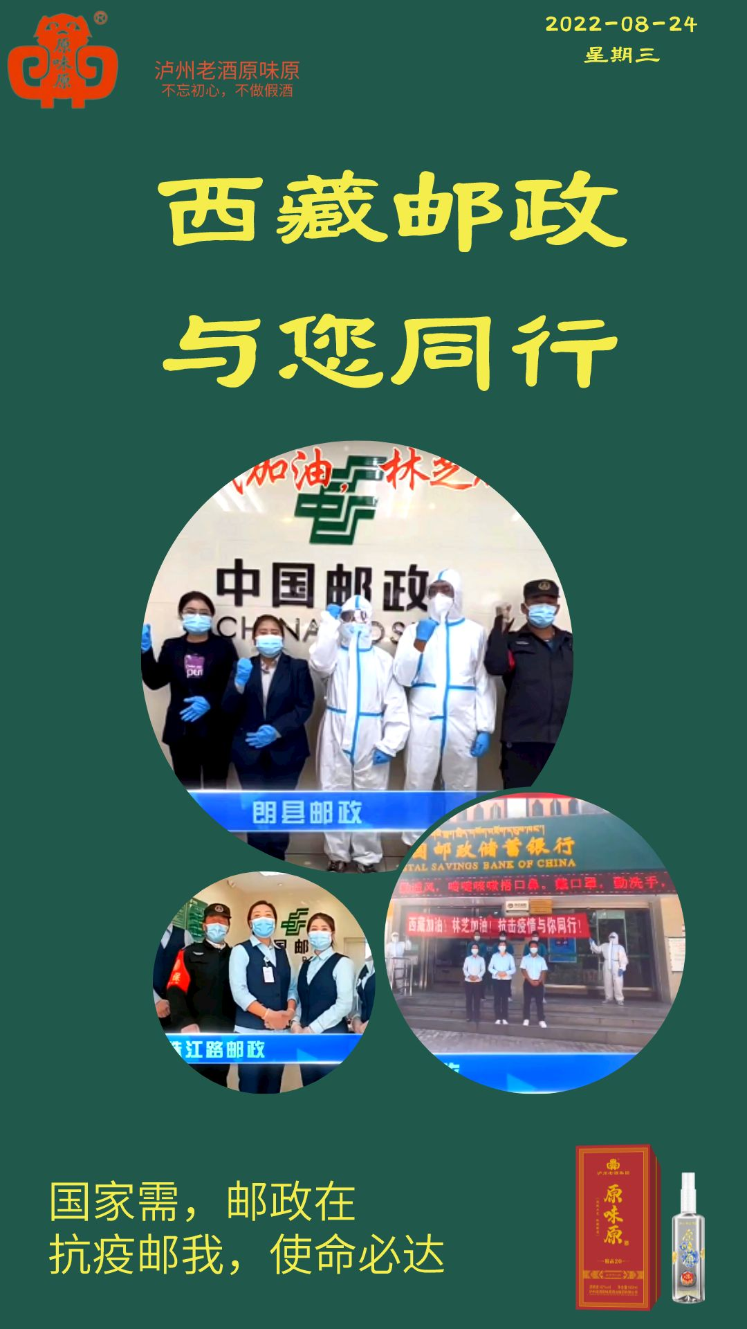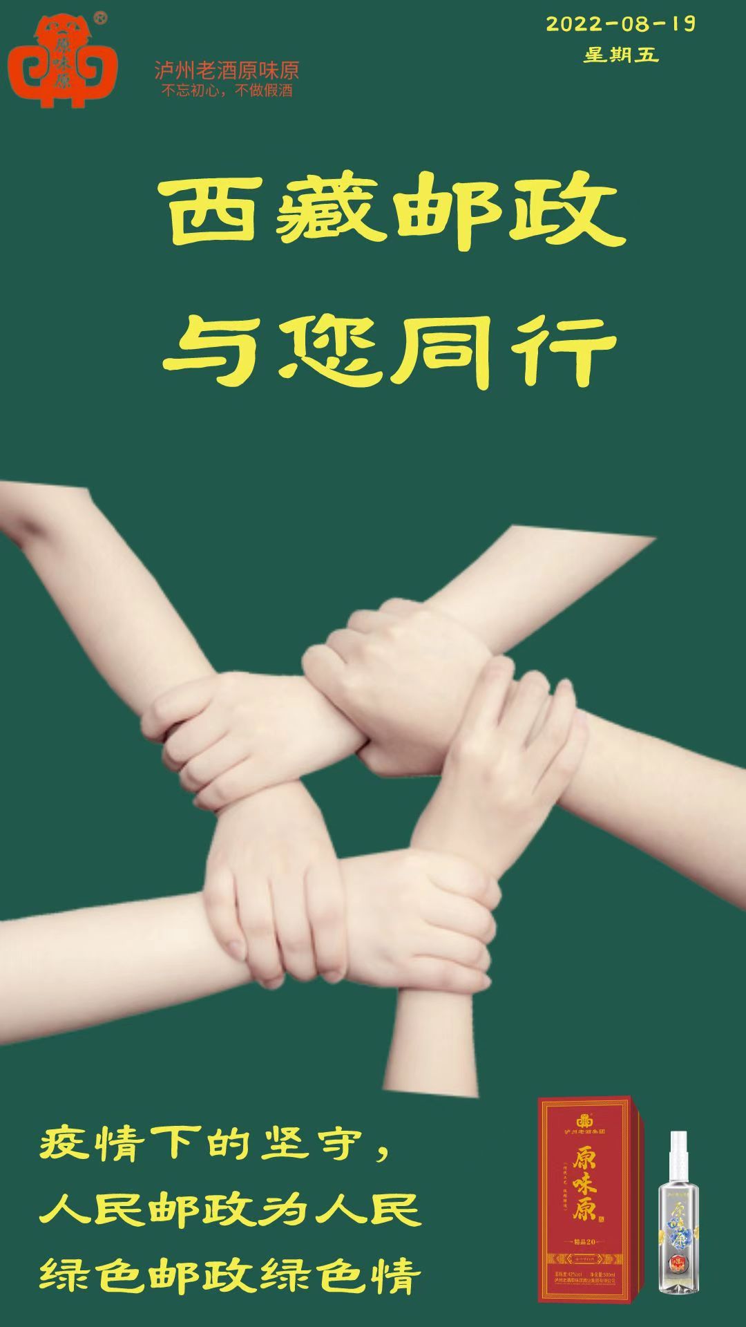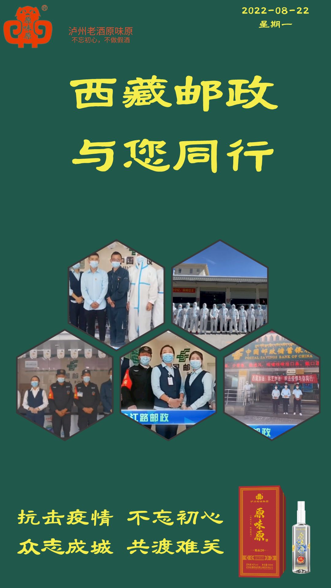 萬眾一心戰疫情,西藏郵政與民眾并肩同行。瀘州老酒作為西藏郵政的友好合作伙伴,自疫情爆發以來,率先給予西藏郵政慰問及聲援。風雨送春歸,飛雪迎春到,西藏郵政老酒情緣,一切皆源感恩,我們風雨無阻與您同在!