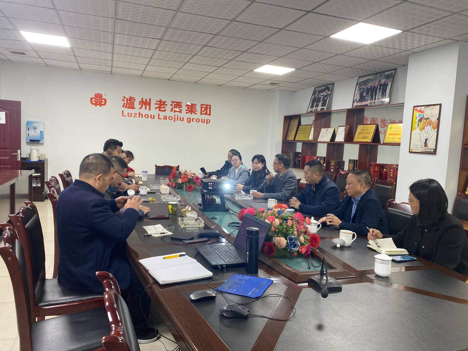 在考察中,瀘州老酒集團公司總經理謝勇首先代表瀘州老酒公司就近期瀘州老酒的產品、產能、品牌、質量、宣傳及合作伙伴等方面向來賓做了詳細介紹。董事長謝可就未來公司的發(fā)展戰(zhàn)略、定位向來賓做了交流。