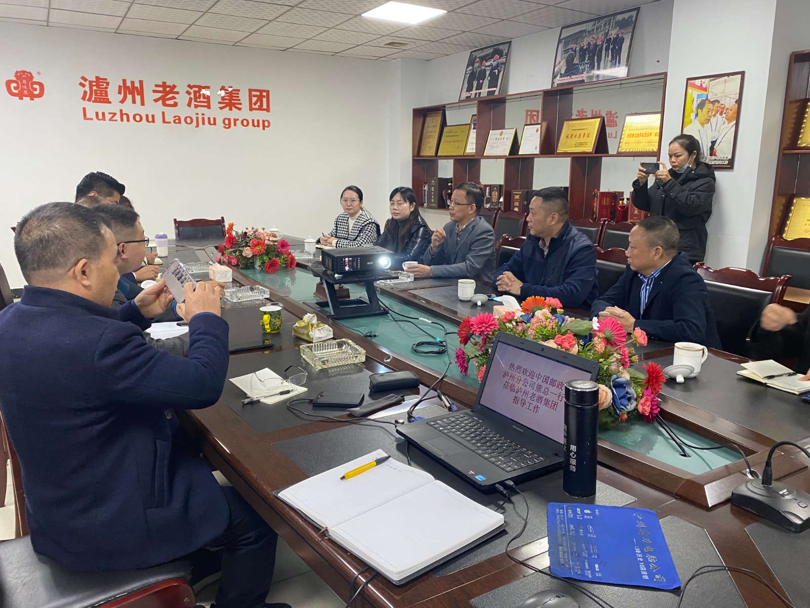 2022年11月14日,中國郵政集團公司瀘州市分公司熊靜總經理,宣哲明副總經理一行,率團到瀘州老酒集團考察,調研。